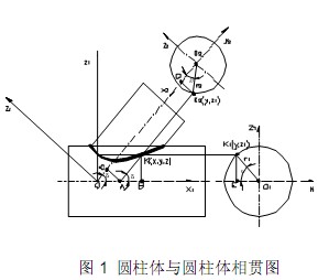 設(shè)兩圓柱的底面半徑分別為r1 與r2 (均已知),兩圓柱軸線的交點(diǎn)為o它們之間的夾角為