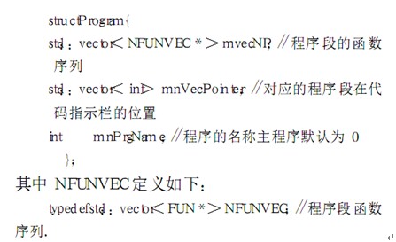 數(shù)控代碼在編輯好后存盤, 并通過了錯(cuò)誤檢查,此時(shí)計(jì)算機(jī)并不能識(shí)別,需要將其轉(zhuǎn)化為相應(yīng)的內(nèi)容以供程序來識(shí)別[ 3 ]. 對(duì)于發(fā)現(xiàn)的錯(cuò)誤給出相應(yīng)的提示,包括: 錯(cuò)誤的詳細(xì)信息、錯(cuò)誤所在編輯其中的位置. 用鼠標(biāo)雙擊改錯(cuò)誤信息,可到達(dá)相應(yīng)的行. 具體實(shí)現(xiàn)采用的方法是: 建立一組結(jié)構(gòu)體來記錄數(shù)控指令的相關(guān)信息,按照數(shù)控指令的格式,把此序列按程序段和程序的格式來存儲(chǔ). 即一個(gè)程序是由幾個(gè)程序段序列組成,程序段則是由數(shù)控指令序列組成.結(jié)構(gòu)體如下: