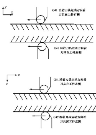 采用G41/G42編程,并且使用合理的刀位號進行編程,這類編程在原有的程序中加入了G41/G42并且設置刀具半徑補償為R值,即可完成加工、注明G41,G42在G71/G72循環過程中不執行,跳步執行過程中才執行〔)為了防i1一中途意外結束,開始時執行G40,取消刀補、