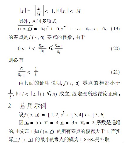 定理1:給定正系數(shù)區(qū)間多項式