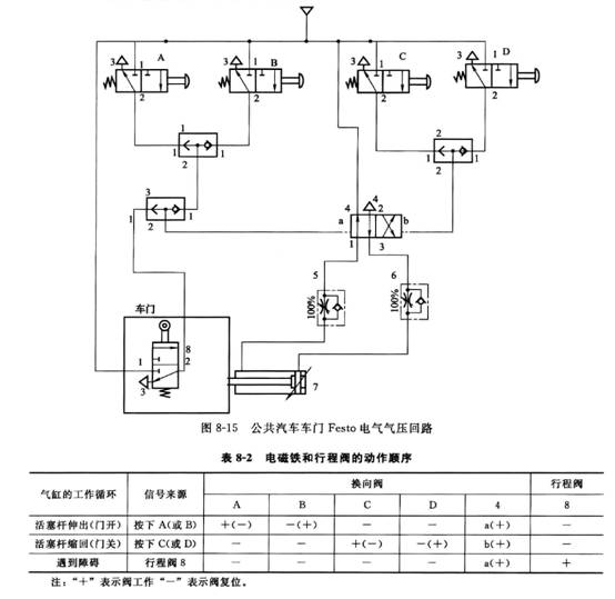公共汽車車門Festo電氣氣壓回路如圖8-15所示。